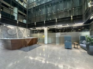 На территории есть парковка - наземная на 300 мест, подземная на 100 мест. Доступ в здание - пропускная система.