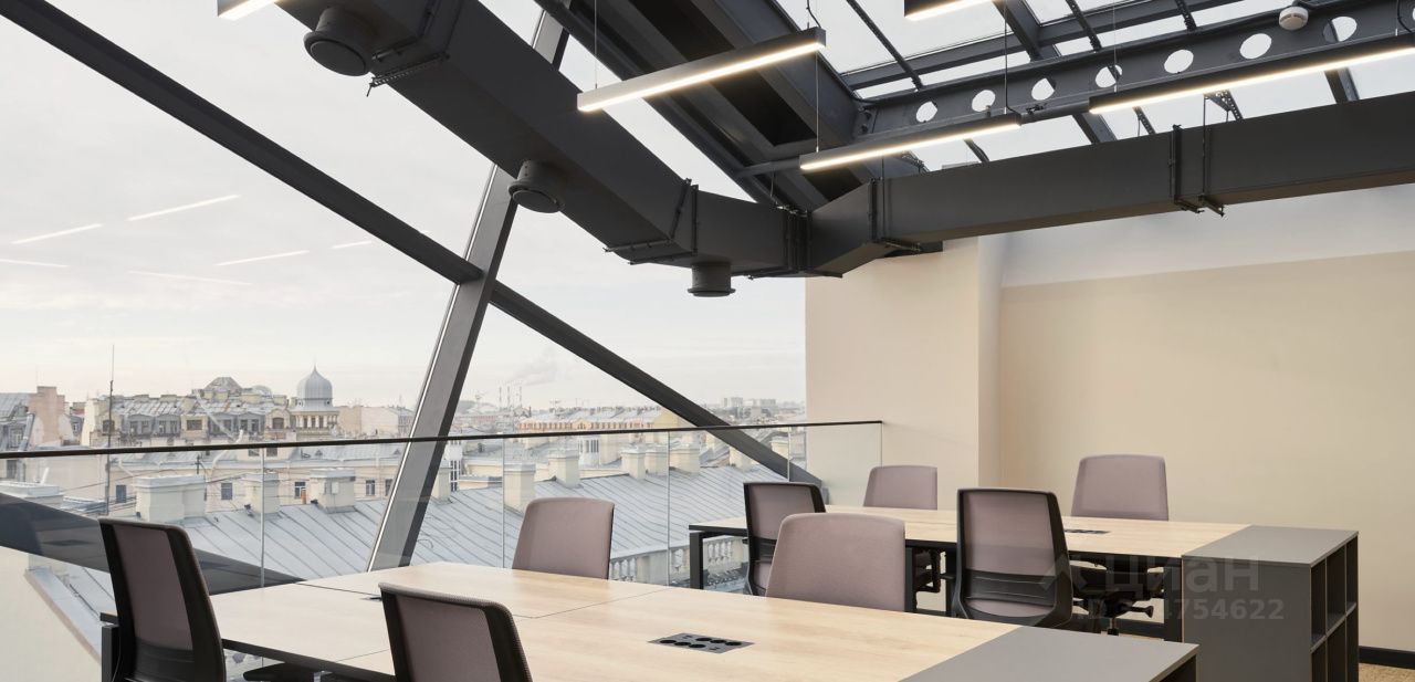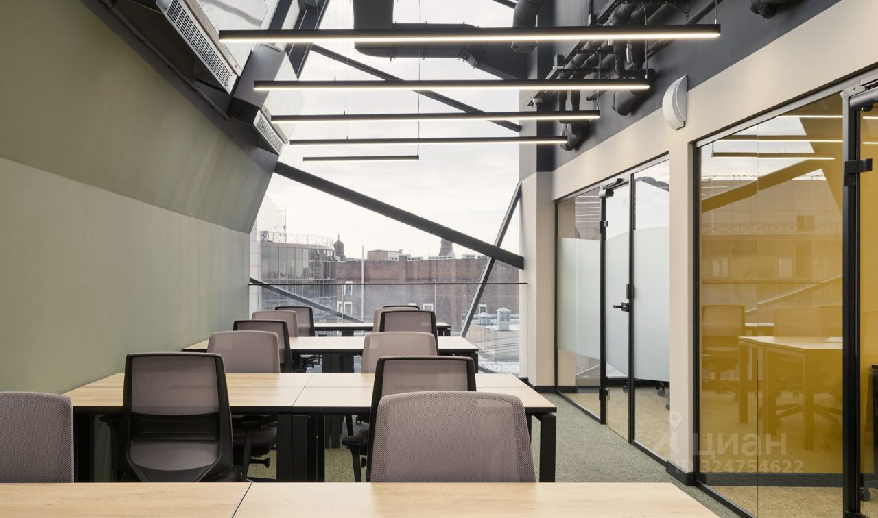 В офисе есть оборудованная кухня, зоны отдыха, ресепшн, переговорные комнаты, гардеробная, санузлы.