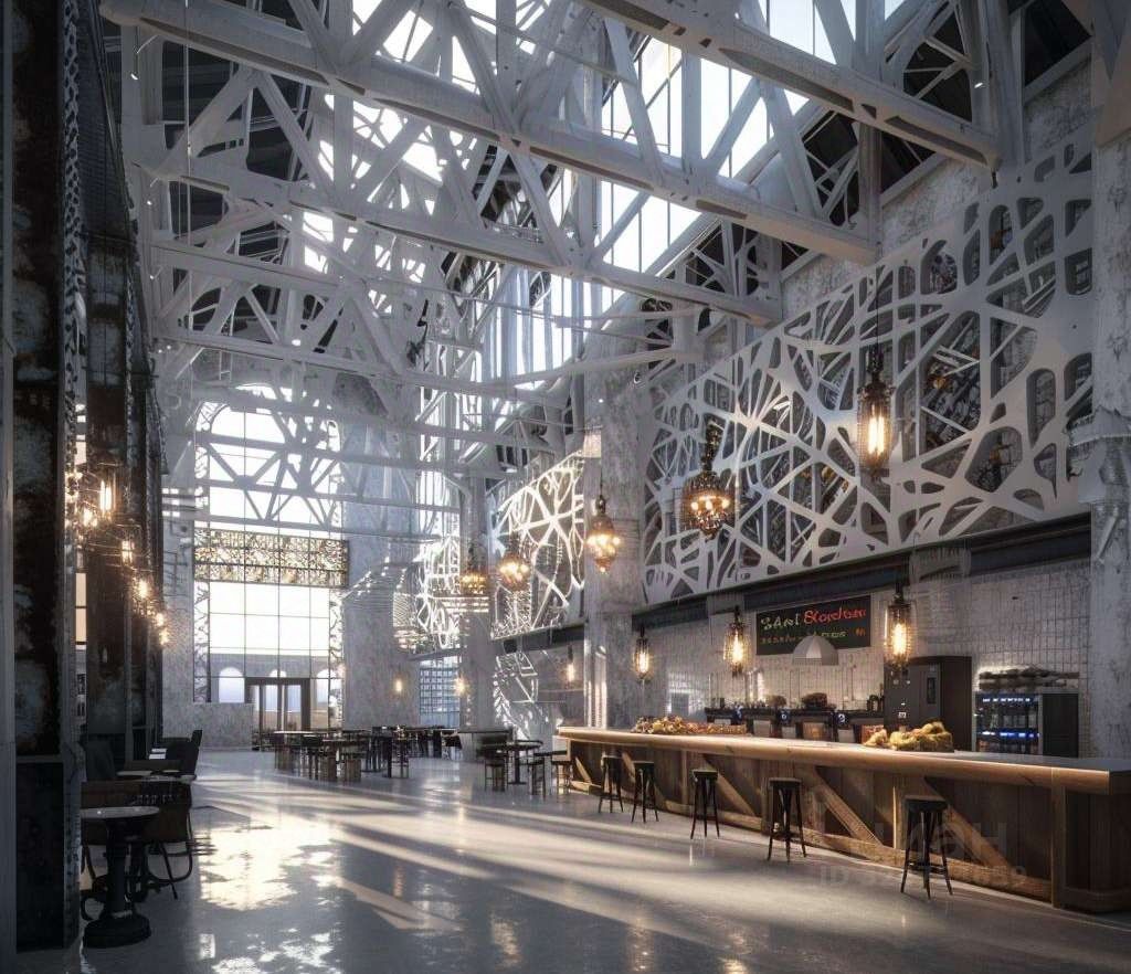 Описание помещения: Пространство, где архитектура, свет и функциональность сливаются в единый гармоничный ансамбль.