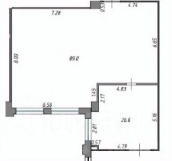 Описание помещения: Базовая офисная отделка, возможна перепланировка- 2 кабинета 26.6 м2 и 89 м2.