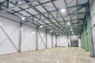 Описание помещения: Размеры 20 метров на 24.1 метра. Ворота - подъемно-секционные с ручным приводом.