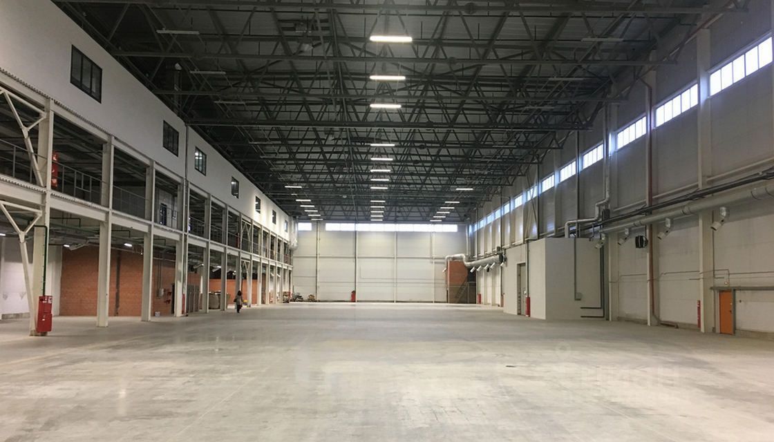 Шаг колонн - 12 на 24. Бетонный пол с антипылевым покрытием. Допустимая нагрузка на пол до 7000 кг на м2.