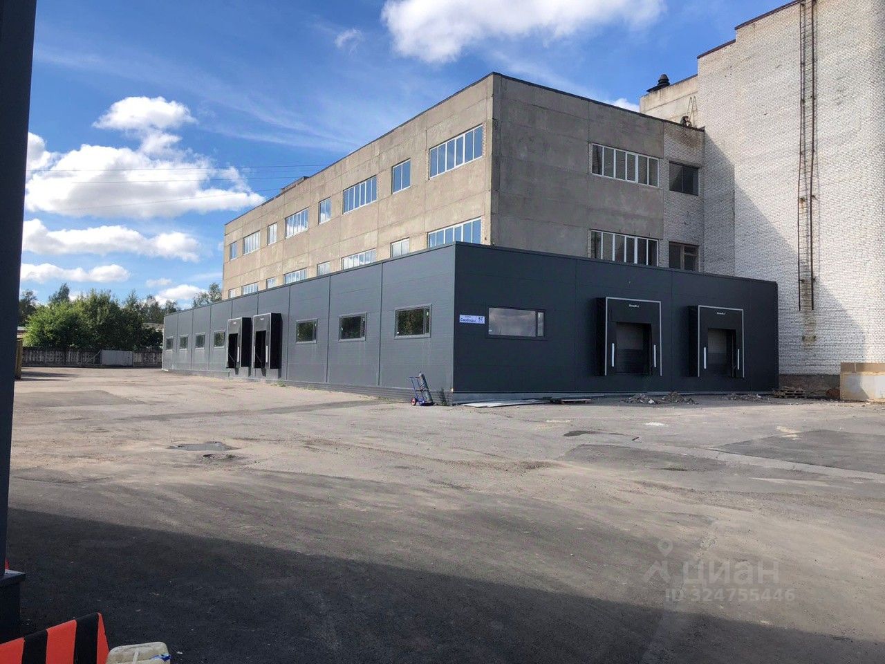 Здание производственно-складского назначения. Транспортная доступность- до КАД 9 км- 15 минут на автомобиле, Московского шоссе 25 км - 25 минут на автомобиле, Гатчина 18 км- 20 минут на автомобиле, в 1 км находится деловой квартал Sun Сity.
