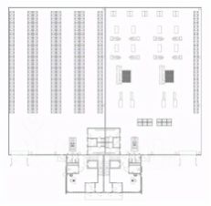 Описание помещения: Помещение из 6-ти секций 849-1031м2, с двухэтажным офисным блоком 148м2 в каждом.