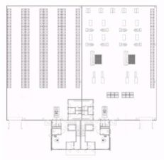Описание помещения: Помещение из 12 секций - 849-1031 м2, с двухэтажным офисным блоком 148 м2, в каждом.
