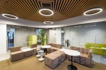 Есть переговорные комнаты, зона отдыха, ресепшн, оборудованная кухня с зоной приема пищи, санузлы.