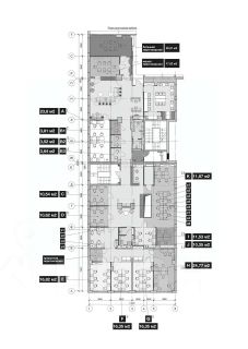 Описание помещения: Офис на 8 человек, полностью мебелирован и укомплектован орг. техникой. На плане офис - A1.