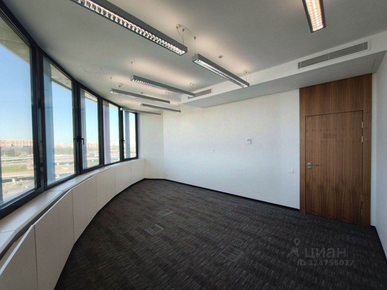 Описание помещения: Современное офисное помещение с минималистичным дизайном. В интерьере преобладают нейтральные тона- белые стены, темные полы и деревянные элементы, а стеклянные перегородки создают ощущение открытости и пространства. Потолки и стены из ГКЛ, выкрашены в белый цвет.