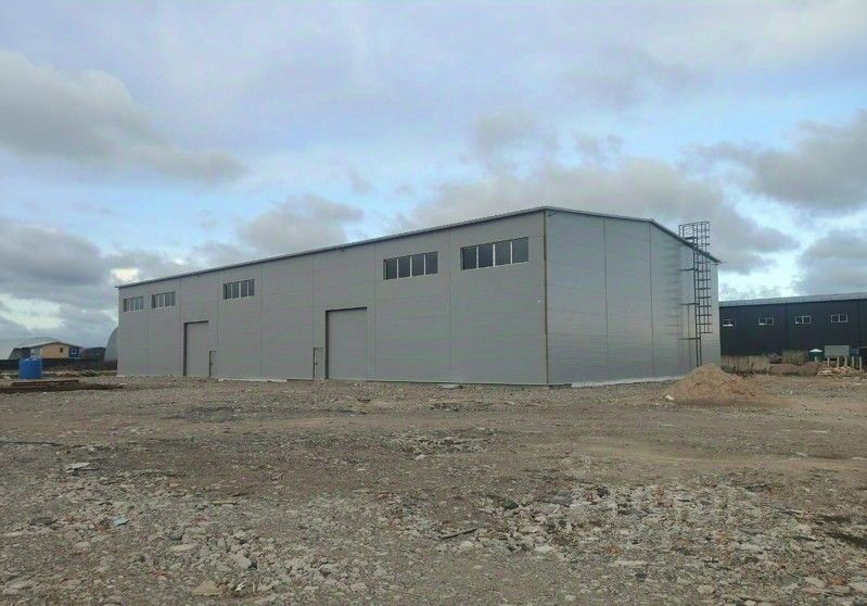 2 автоматических ворот размером 4 м. на 4,5 м. Коммуникации - газ, вода. Электричество - подключено 50 кВт, возможно увеличение.