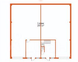 В здании 1 этаж - 297 м2, антресоль - 99 м2.
