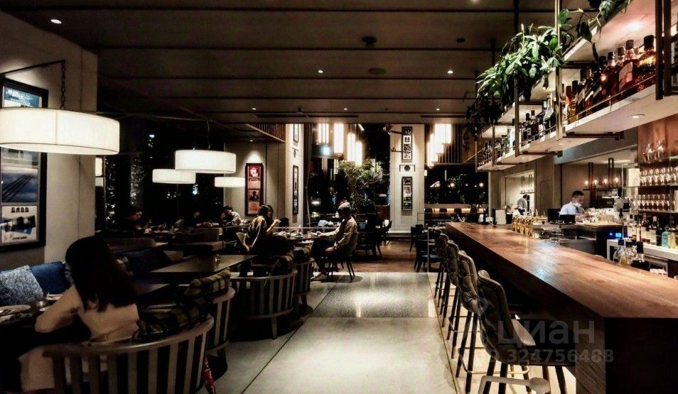 1-й этаж - три просторных зала открытой планировки на 70 человек, вместительная барная зона, летняя терраса на территории палисадника, кухонная зона, помещения персонала, тех. помещения.