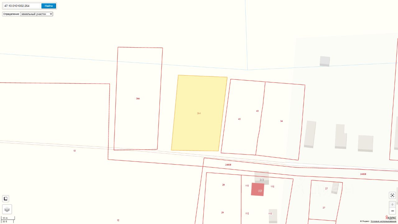 Земельный участок с кадастровым номером 47:10:0101002:264 площадью 1856 кв.м, разрешенное использование для индивидуального жилищного строительства, расположенный по адресу: Ленинградская область, Волховский муниципальный район, Кисельнинское сельское поселение, дер. Лавния.