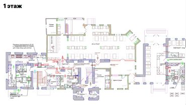 1-й этаж - три просторных зала открытой планировки на 70 человек, вместительная барная зона, летняя терраса на территории палисадника, кухонная зона, помещения персонала, тех. помещения.
