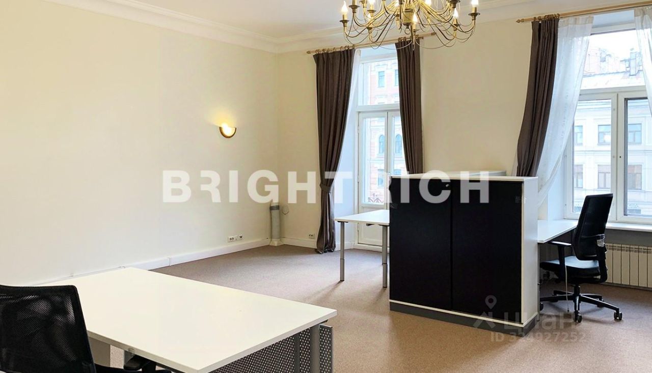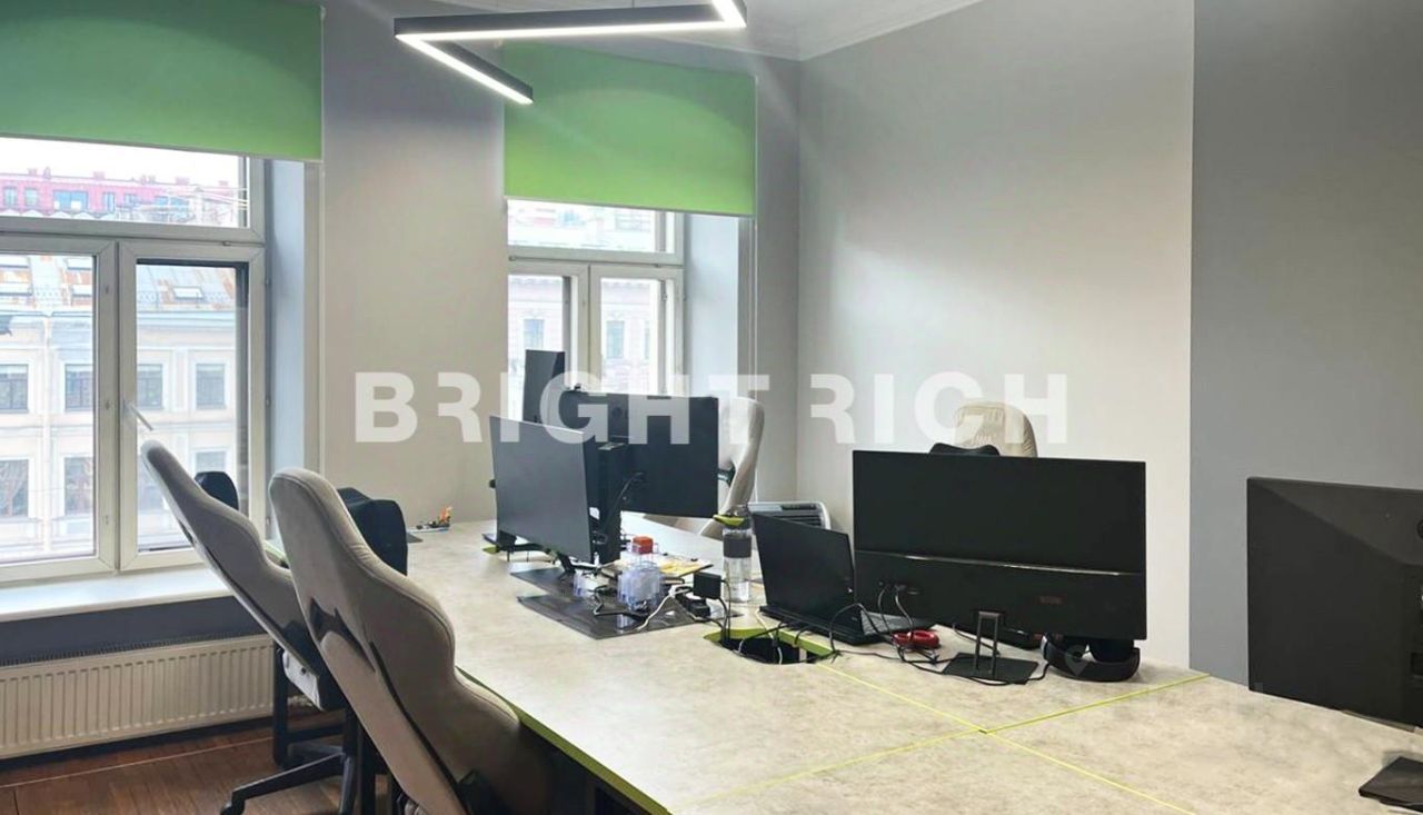 В помещениях выполнен качественный офисный ремонт. Планировка включает отдельные кабинеты, оборудованную кухню с мокрой точкой и собственный санузел. Панорамные окна наполняют пространство светом и открывают виды на канал Грибоедова и историческую застройку города.