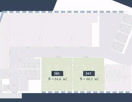 Описание помещения: Два блока на этаже расположены рядом - 66 м2 и 64 м2.