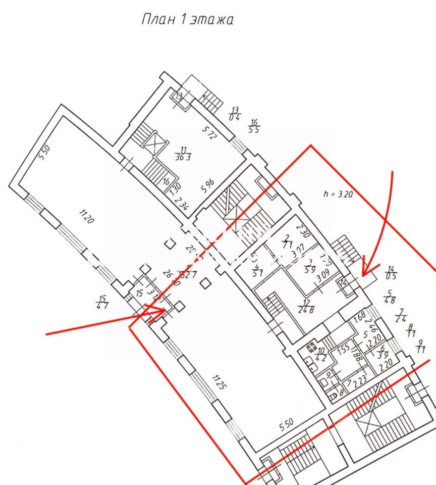 -1 этаж - 76 м2, основной зал, потолки 4.35 м., высокие окна, чистовая отделка; 2 этаж - 61 м2; подвал - 108.8 м2;