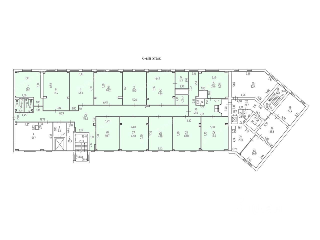 - Размер типового этажа: 2300;