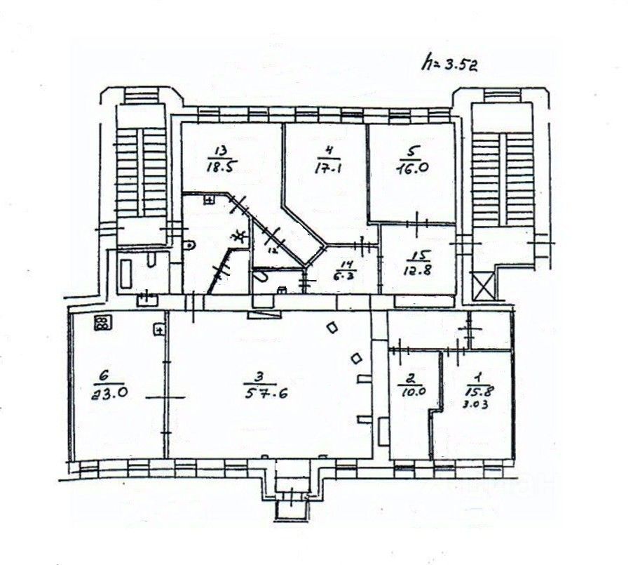 Высокие потолки, кабинетная планировка: большой зал + пять отдельных кабинетов.