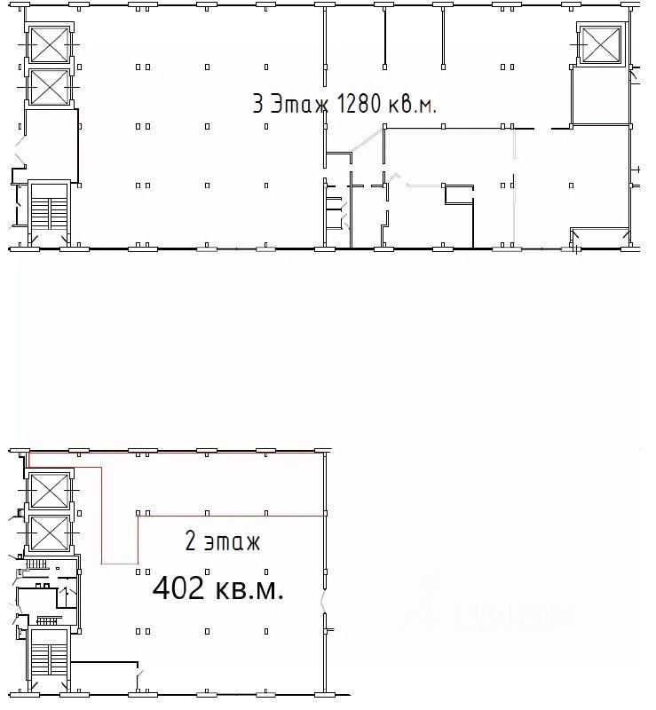 - 1278 м² на 3 этаже и 604 м² на 2 этаже