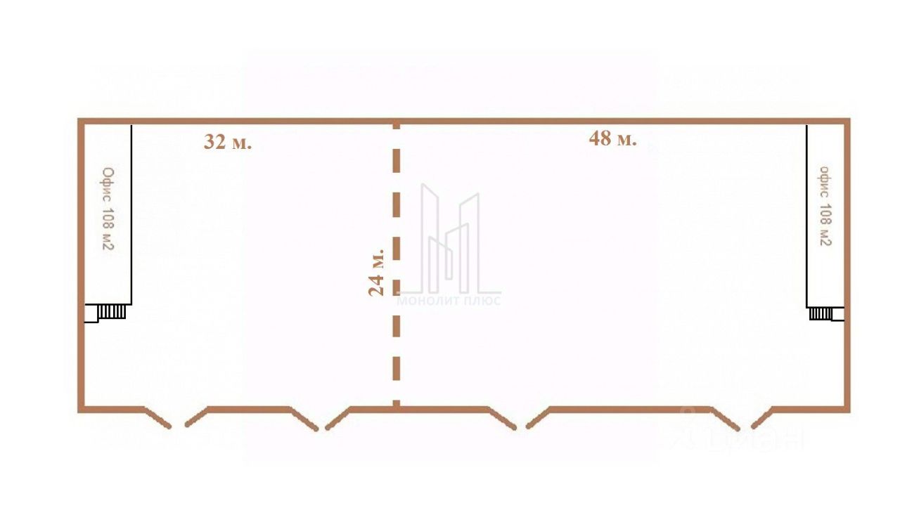 S общ. 2136 м2, включая два торцевых антресольных офиса по 108 м2.