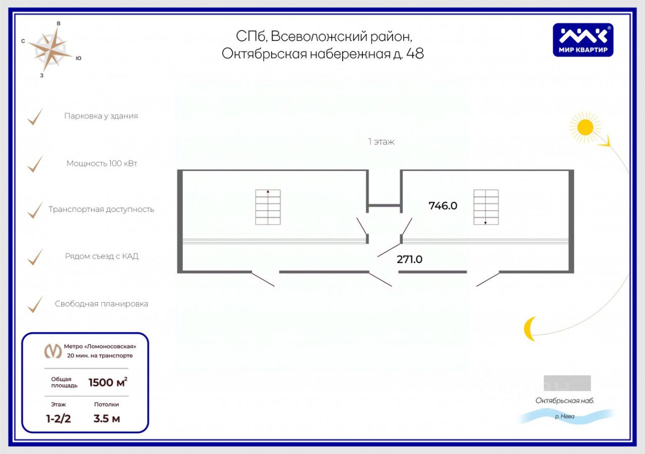 Отличная транспортная доступность объекта - рядом выезд на КАД, Октябрьская набережная и Володарский мост на левый берег Невы