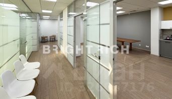 В помещении выполнена качественная чистовая отделка. Планировка смешанного типа: open space, кабинеты и переговорные. В офисе оборудована кухня, предусмотрены три санузла. Окна выходят в большой светлый двор, что обеспечивает комфортную рабочую атмосферу и отсутствие уличного шума. Блок имеет два независимых входа из лифтовых зон, что удобно для разделения потоков сотрудников и клиентов.