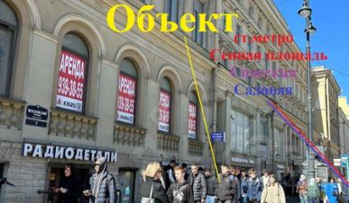 Помещение находится в суперпроходном месте, в 2-х минутах ходьбы от ст. метро "Садовая", "Спасская", "Сенная площадь"