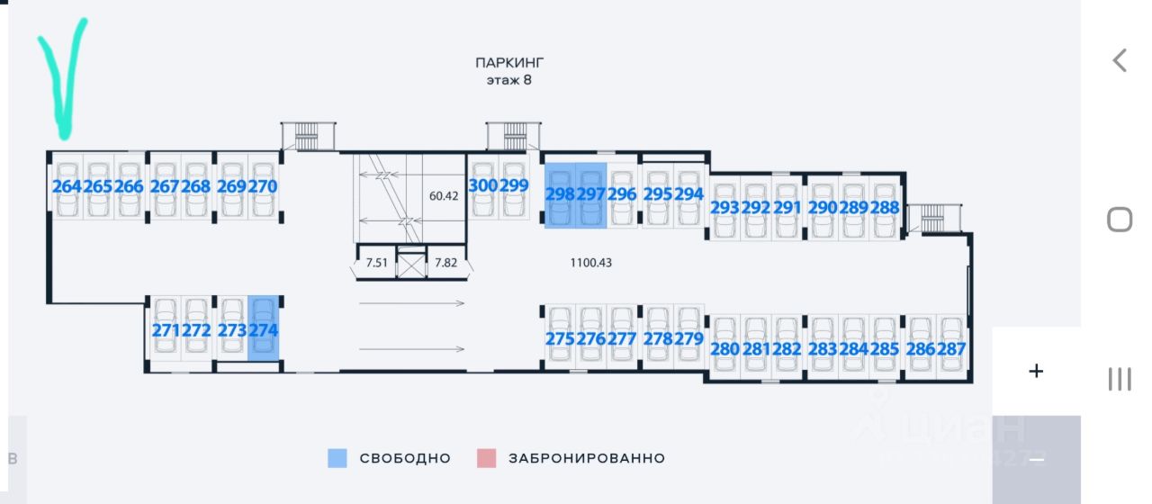 Сдается угловое машиноместо на 8 этаже многоуровневого паркинга.