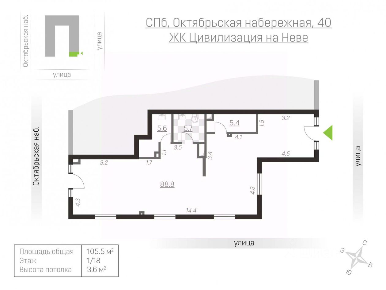 Арт. 128989118 Предлагается к сдаче в аренду на длительный срок коммерческое помещение площадью 105.5м2 в ЖК "Цивилизация на Неве"!