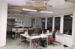 Описание помещения: Презентабельный офисный блок, есть зона ресепшн, частично укомплектован мебелью- столы, стулья. Планировка включает в себя- рабочие кабинеты, кабинет руководителя, серверную, зону отдыха, подсобное помещение, зону кухни. Санузел расположен в блоке.