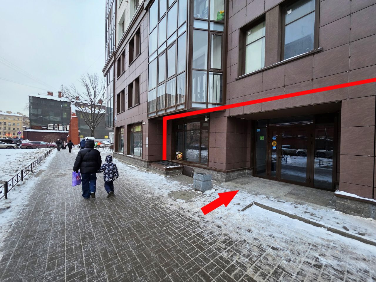Помещение находится в 5-ти минутах от станции метро "Московские ворота". Квартал с застройкой комфорт-класса, полностью заселен. ОЧЕНЬ высокий трафик! Помещение находится прямо на народной тропе к метро!