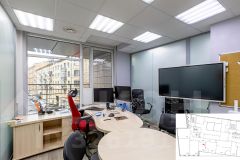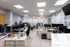 Сейчас офис представляет собой несколько независимых помещений, можно сделать перепланировку.