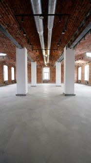 Офисный центр реконструирован с сохранением архитектурного наследия, создавая символическую связь исторического прошлого и современного использования объекта в качестве делового пространства в стиле лофт.