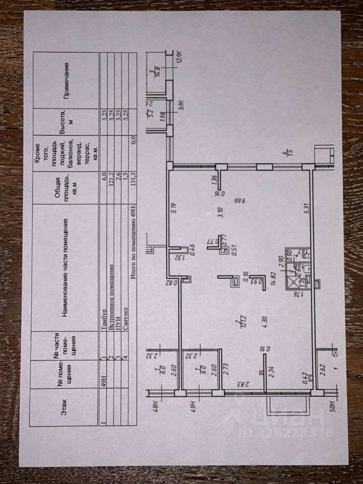 • Потолки 3,25 м.