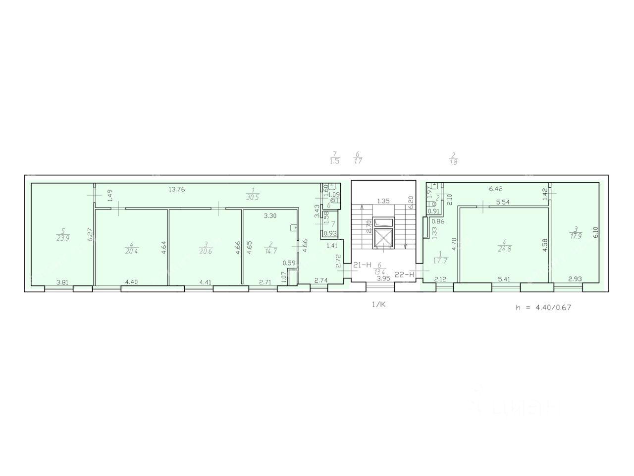 - Высота потолков: 2.7 м;