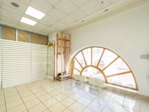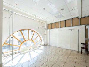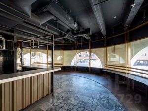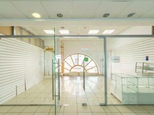 Большие витринные двери и красивые окна.