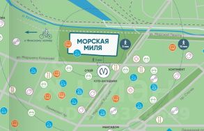 Развитая инфраструктура в ЖК Морская миля действует школа и детский сад (напротив помещения)
