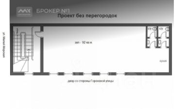 Возможна перепланировка силами собственника в большой зал open space - площадью 92 кв.м.