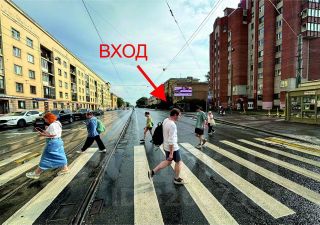 Возле многолюдной остановки