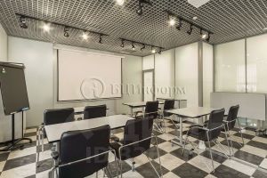 Расположено на втором этаже. Произведена классическая офисная отделка. Стены - обои под покраску, подвесные потолки "Армстронг".