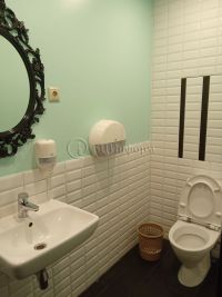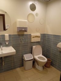 В хорошем состоянии. Выполнена стандартная отделка. Стены - обои под покраску, напольное покрытие - плитка, ламинат, подвесные потолки "Армстронг".