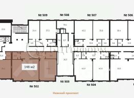 Кабинетная планировка из шести комнат. В хорошем состоянии. Произведена качественная офисная отделка. Напольное покрытие - ковролин/ламинат. Окна - стеклопакеты. Есть санузлы. Помещения оборудованы системой кондиционирования и приточно-вытяжной вентиляцией.