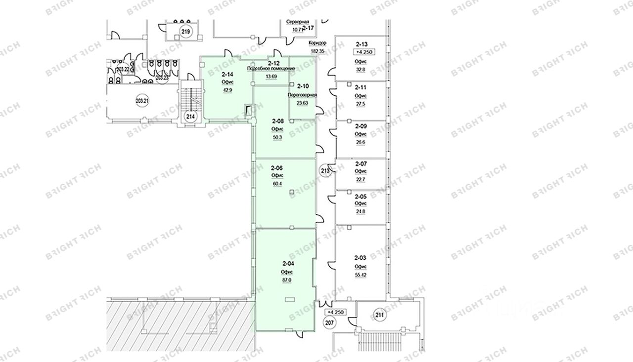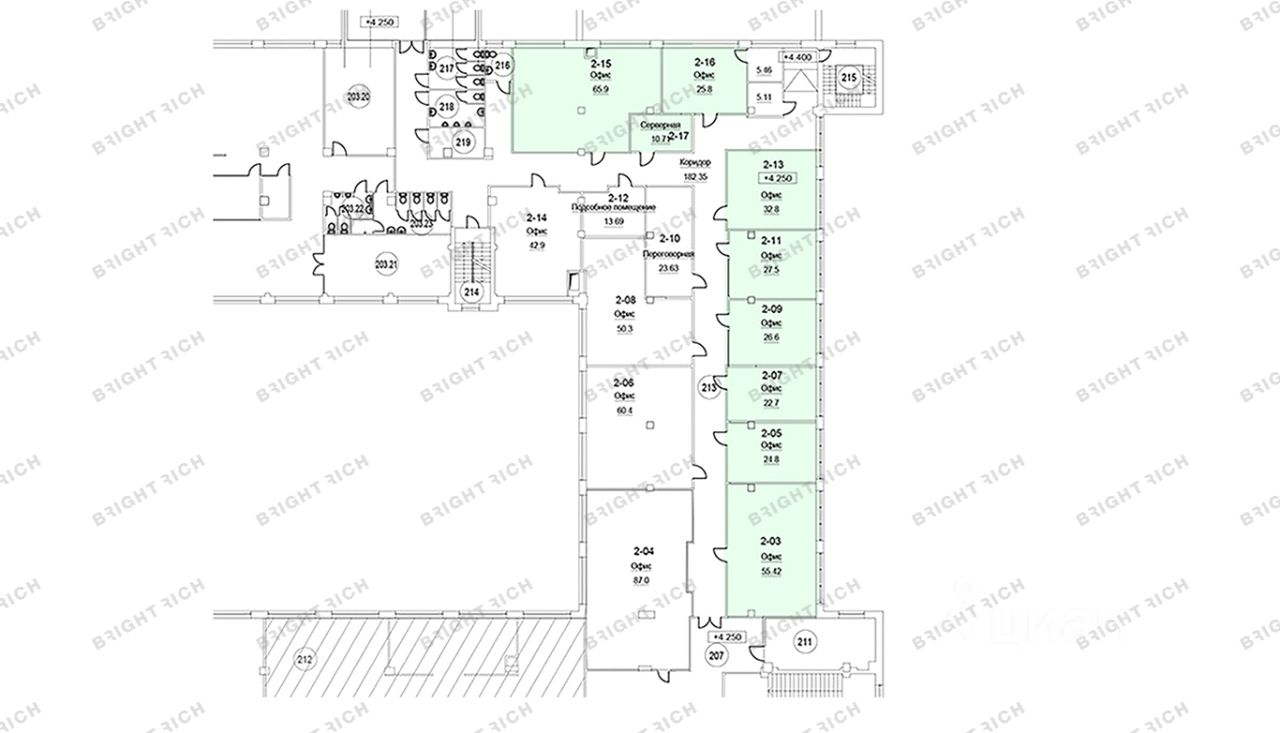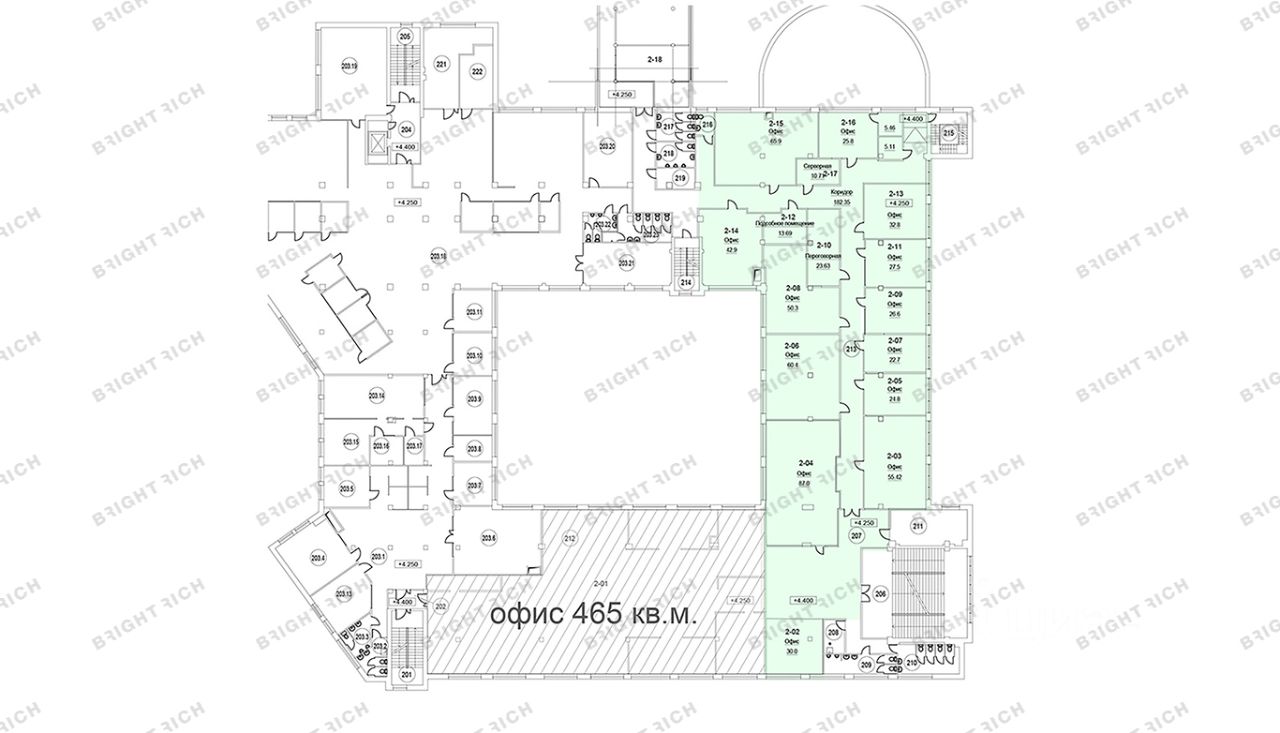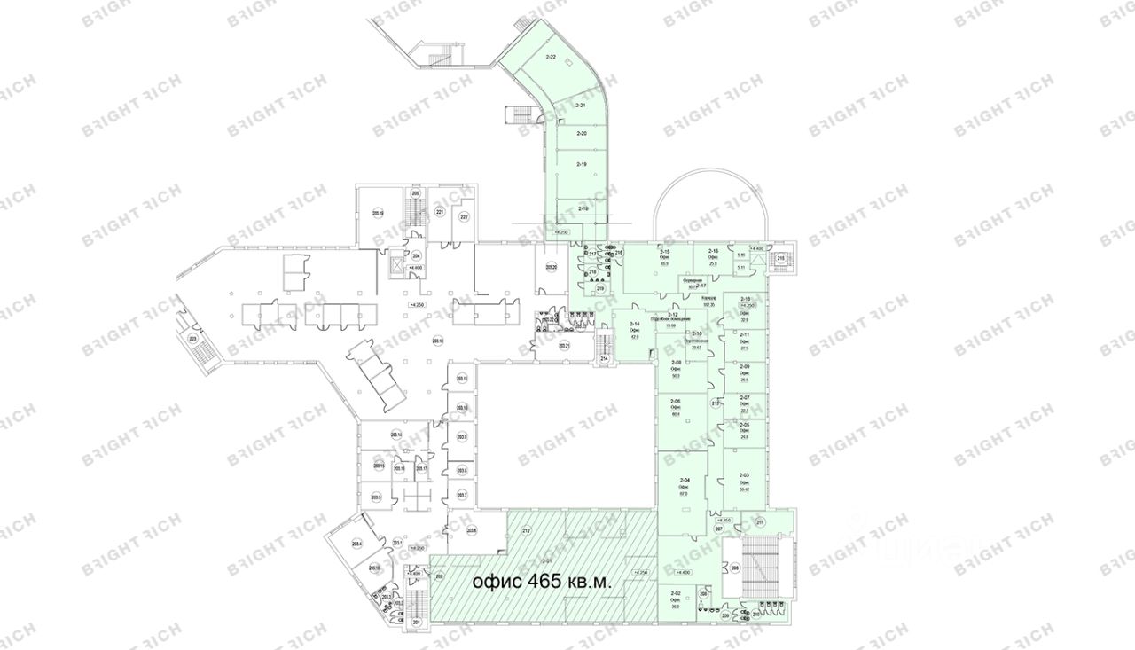 • Площадь: от 277,6 до 1 703 м², 2 этаж, класс B+