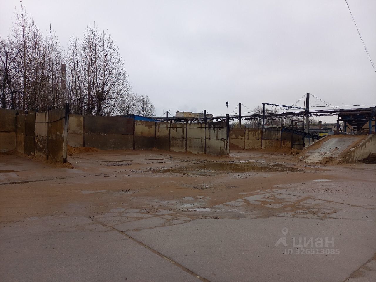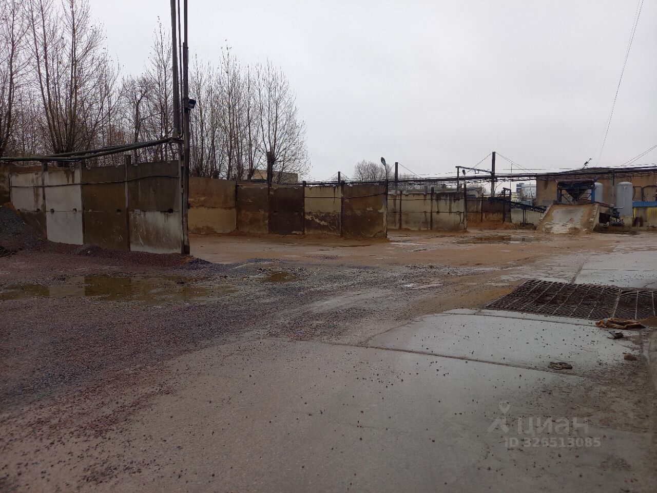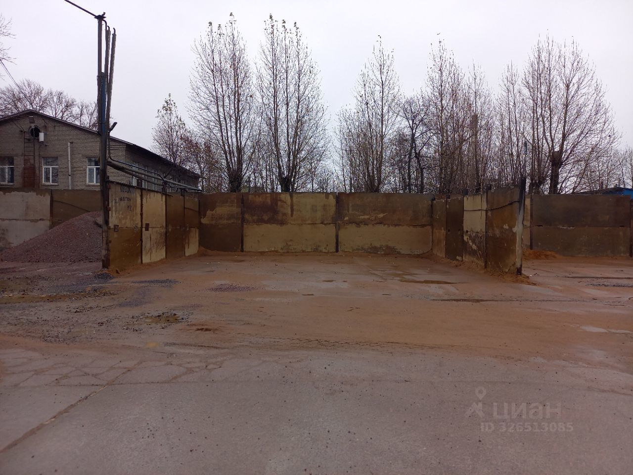 Покрытие: бетонные плиты. С трех сторон огорожен железобетонными конструкциями (плитами), что позволяет при установке навеса и ворот получить блок, состоящий из четырех отдельных секций, общей площадью 720 кв. М. (4Х180 кв. М.), h~4,5 м.