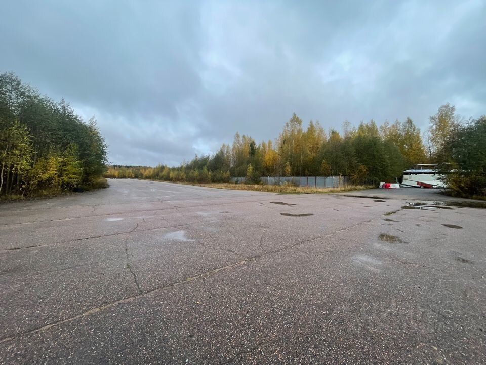 Открытая площадка от 1 до 3 га с асфальто-бетонным покрытием, на территории бывшего аэропорта Ржевка. Круглосуточно действует охранно-пропускной режим.