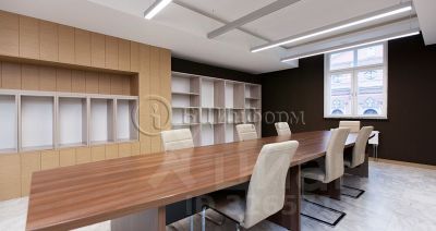 Кабинетная планировка из пяти комнат. В хорошем состоянии. Произведена качественная офисная отделка. Напольное покрытие - ковролин/ламинат. Окна - стеклопакеты. Есть санузлы. Помещения оборудованы системой кондиционирования и приточно-вытяжной вентиляцией.
