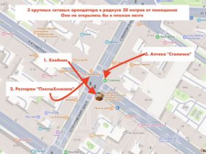 8. окружение: через дорогу напротив "Хлебник", рядом аптека "Столички", через Суворовский ресторан "ПхалиХинкали". Сетевики почти всегда садятся в прибыльные места.