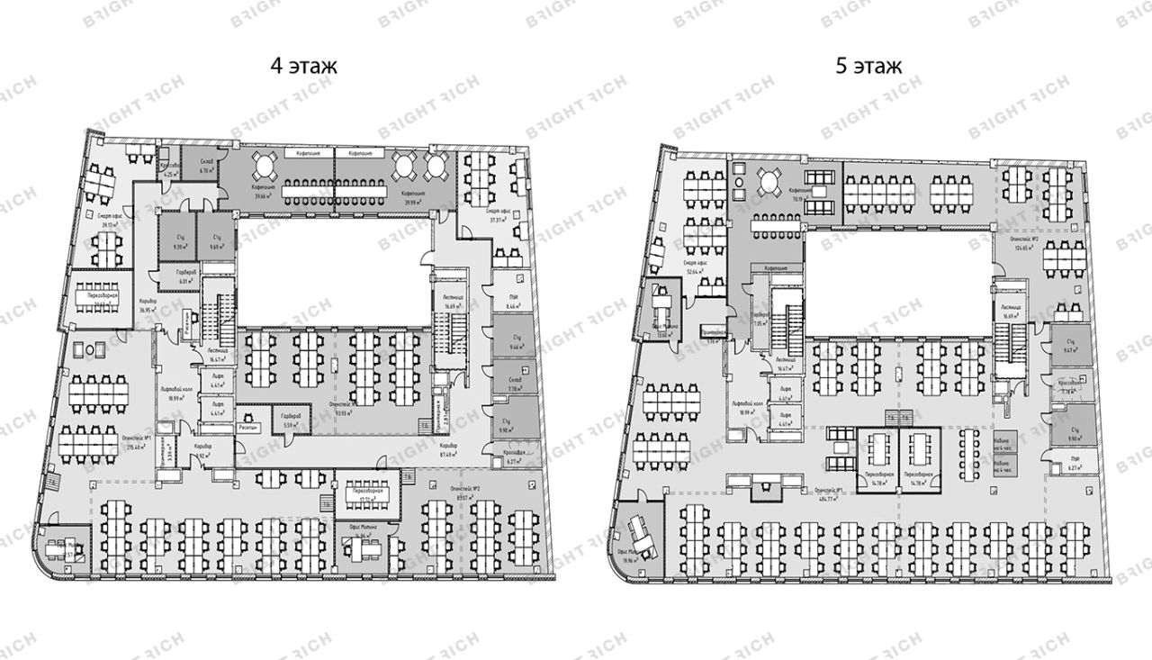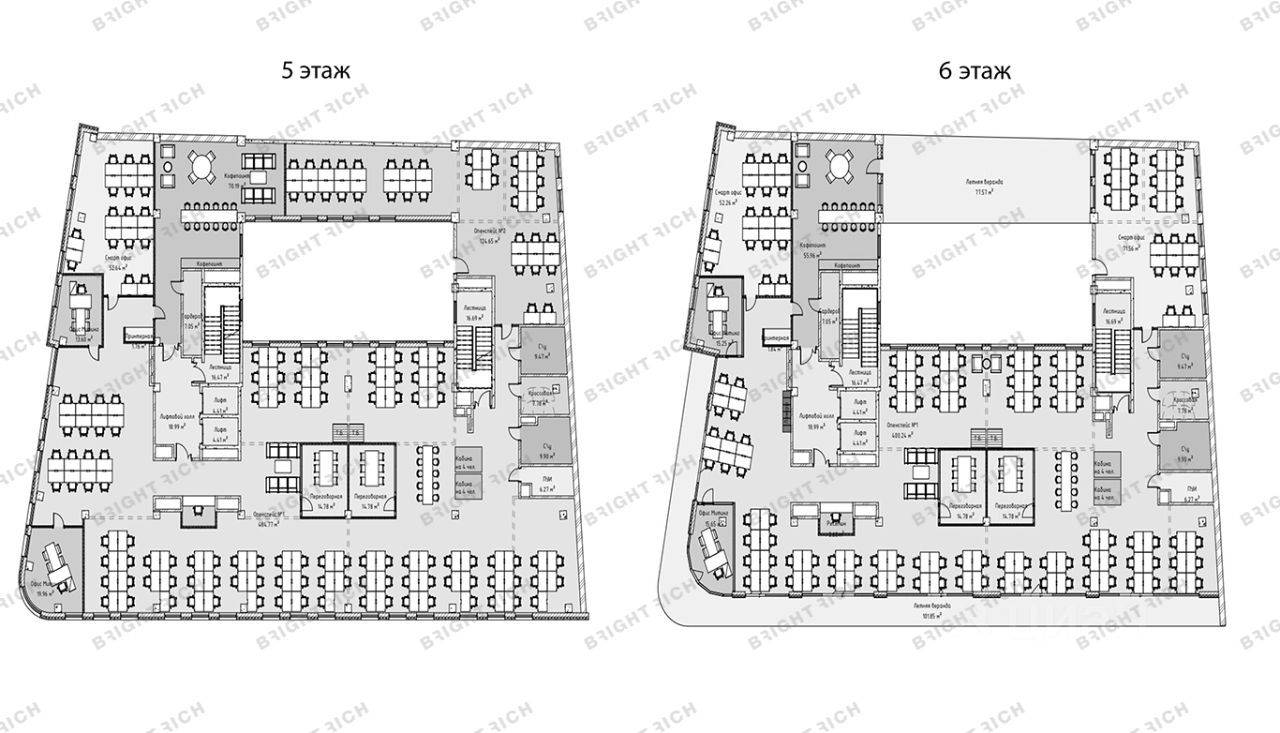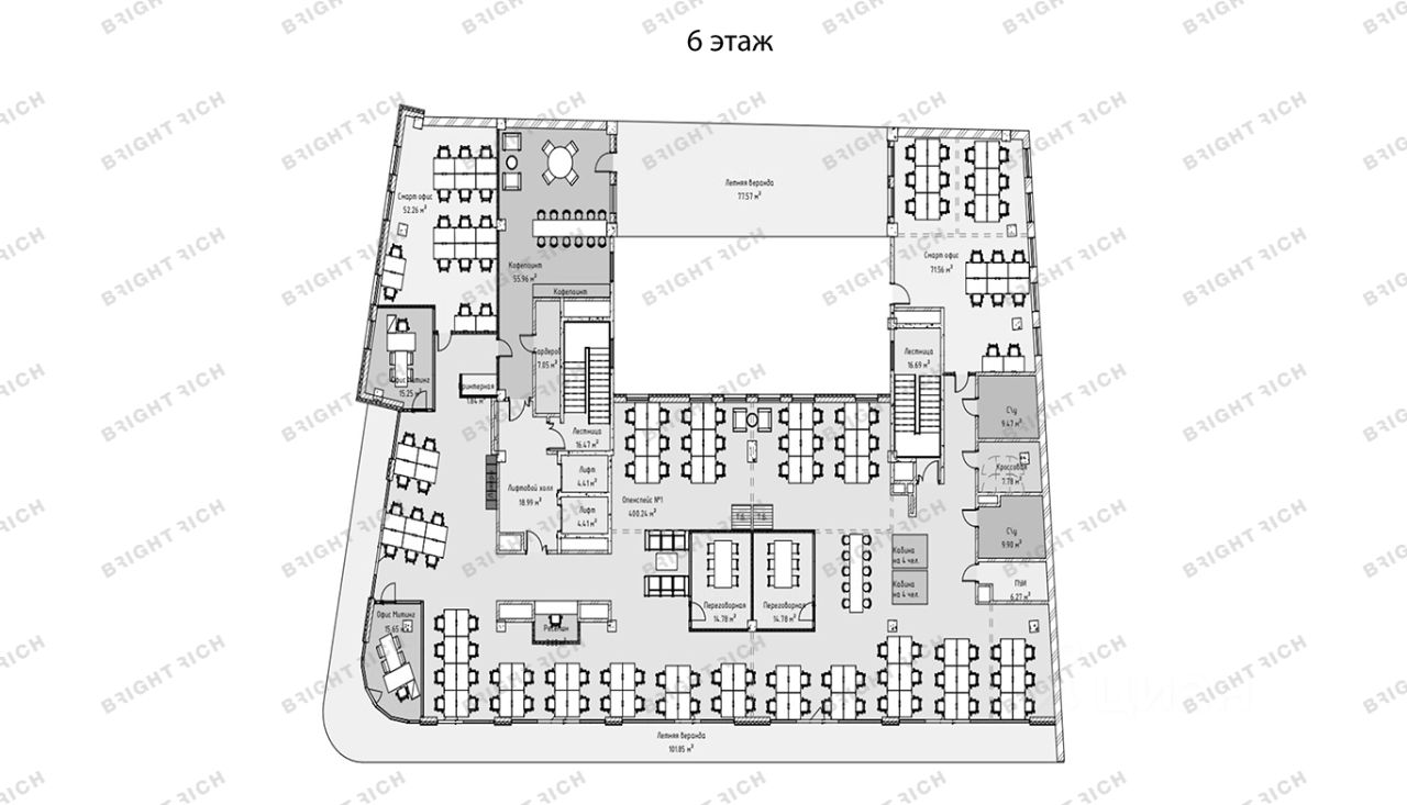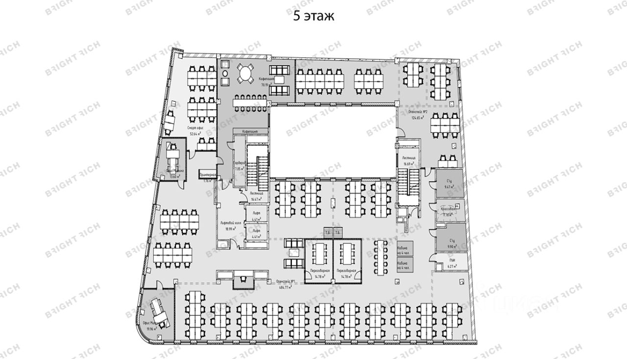 • Планировка: open space, кабинеты, переговорные, зоны отдыха, кухня, с/у