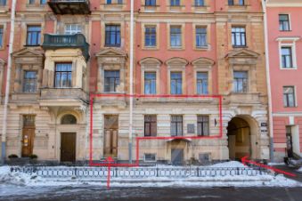 Помещение имеет два отдельных входа: парадный с улицы Моховой - для клиентов, создания публичного образа; и служебный со двора - для сотрудников, логистики.