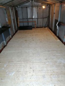 Гараж поднят на высокой бетонной плите, поэтому зимой открывается без проблем.